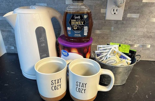 Heated blanket for cool evenings and a wide selection of teas and coco to help enjoy your stay.