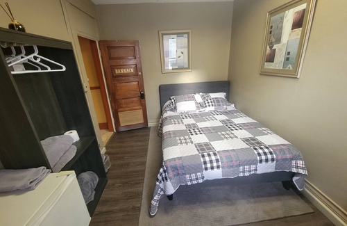 Cozy room with comfortable queen bed located above the Dillon Tap House which serves the best craft beer in Dillon. The Tap House generally closes at 10pm so guests can come have a beer, glass of wine, and a bite to eat before turning in for the night. Room features vanity with hot and cold water, coffee maker, cable TV, internet, access to washer and dryer if needed. Shared fully remodeled bathroom. Building was built in the early 1900's and still shows some of the rustic features with several modern updates for your comfort.
