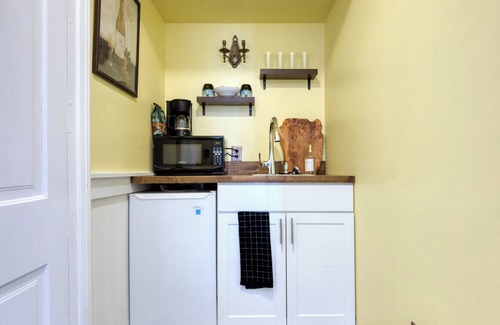 This suite is simply decorated with unique victorian features tied in. It's outfitted to make your trip a comfortable one.