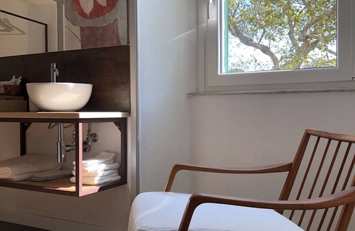 While you're here, you can enjoy all the comforts of home and more, including a rainfall showerhead and free WiFi, as well as an LCD TV and a bidet. Other amenities include a memory foam bed, down comforters, towels, and a desk.