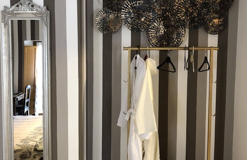 While you're here, you can enjoy all the comforts of home and more, including a hydromassage showerhead and free WiFi, as well as a flat-screen TV and a bidet. Other amenities include down comforters, laundry facilities, towels, and bathrobes.