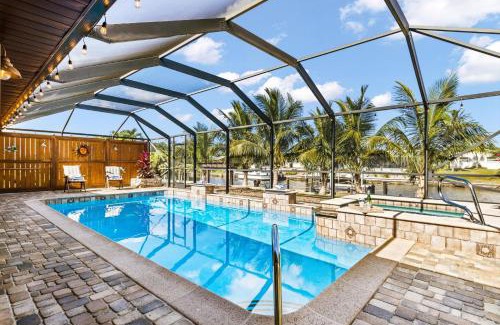Offering a garden, Direct Access Waterfront Villa with Heated Pool & Spa Edgewater Escape Roelens Vacations features accommodations in Cape Coral. This villa provides air-conditioned accommodations with a terrace. The villa has a year-round outdoor pool and a hot tub. With free Wifi, this 4-bedroom villa offers a cable TV, a washing machine, and a fully equipped kitchen with a dishwasher and oven. Towels and bed linen are offered in the villa. The property has an outdoor dining area. A water park is available on-site and cycling can be enjoyed close to the villa. Fishermen's Village is 26 miles from Direct Access Waterfront Villa with Heated Pool & Spa Edgewater Escape Roelens Vacations, while Sanibel and Captiva Chamber of Commerce and Visitors Center is 19 miles from the property. Southwest Florida International Airport is 19 miles away.