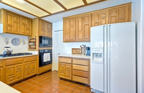 Full-size refrigerator, stove, oven, microwave, and dishwasher