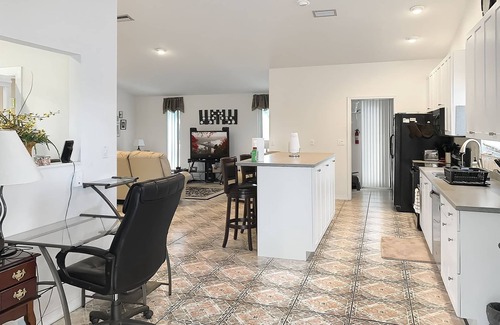 Very large living area with another TV with cable and with a full dining room, eat-in bar counter, computer workstation, and laundry room right off the kitchen, this is truly a home away from home. There are many conveniences throughout the home and it even includes internet/Wifi.