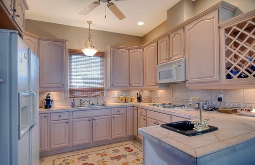 For the discriminating chef, we have two kitchens, back to back, one with gas cooktop and wall oven, one with electric range; dishwasher, two refrigerators!
