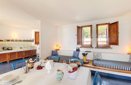 Nestled in the Mediterranean coastline with direct access to the sea this villa will make you feel like you’ve found peace at heart. Every evening you can relax and enjoy your holiday watching the sun disappear into the sea. This villa is an elegant traditional white building of southern Apulia. It is surrounded by lush Mediterranean plants and traditional stone walls where you can relax and enjoy your holiday.The villa has a large kitchen and living room, two bedrooms and one bathroom with a bathtub. The kitchen, renovated in early 2021, is equipped with a large fridge, dishwasher, induction hob, oven, toaster, kettle, crockery, cutlery and cooking utensils. The large traditional walls and the many windows overlooking the sea keep the house cool. The bedrooms are spacious with large wardrobes and the kitchen is fully equipped. You will be able to spend relaxing hours on the shady sea view terrace and in the evening watch the southern Italian sun as it slowly sinks into the Ionian Sea. Fresh fish prepared on your BBQ and a glass of white wine accompanied by the sound of the waves right below you. Welcome to a memorable holiday!There is no TV as this is the perfect place for a digital detox, but if you feel you’re missing out not being connected you can always use the free WiFi.Speaking about WiFi, this house is also ideal for remote workers and professionals. No need to use fake backgrounds in your video calls once you are here, the sea behind you will make all your colleagues envious We’ve hosted many remote workers so far and the quality of the WiFi connection is usually sufficient for all common office tasks; there are no traffic limitations.Two fish restaurants are very close walking distance from the house. The closest sandy beach is around 2 km away; among the equipped beaches we recommend Cinque Vele, which is also ideal for families (approx. 10 minutes by car). The nearest supermarket is around 4 km away.In the same property, but at some distance and separated by plants and trees, another villa is available with 3 bedrooms and two bathrooms. For larger groups both villas can accommodate up to 10-13 guests. Sheets, duvets and towels are not included. If you don't want to bring them with you from home, regardless of the length of your stay, you can rent them for €24 per person. Final cleaning is not included and costs €100, unless you clean yourselves before departure. Dogs and pets are allowed (max 2 dogs or pets, surcharge €100 per dog/pet). You will need to inform us in advance. We will ask you to pay a security deposit of €600 before arrival. The security deposit will be refunded within 7 days after departure, if there is no damage. Electricity costs (and thus where applicable AC, hot water, heating etc.) are NOT included in the price and will be charged based on your actual consumption. The price per kWh charged to guests was €0,42 on 13/11/2024, when this text was last updated, but as prices are fluctuating a lot, your actual price per kWh will be communicated a few days before your arrival based on the current market price.We decided not to include electricity costs in the rent in order to: a) keep our rental prices stable despite inflation and b) incentivate our guests to use electricity responsibly, helping us to reach our sustainability goals. Thank you for your understanding. ABOUT USWe're a team of holiday enthusiasts with diverse backgrounds based between Italy and Switzerland. 🇨🇭Our mission is to find the most unique holiday homes, refurbish them and make them available to people like you, who want to live the authentic Italian experience at a high (Swiss!) quality, without spending a fortune By booking this accommodation, you accept that:- We are obliged by law to verify the identity of all our guests. We will therefore ask you to upload copies of your IDs on our (secure) website to verify your identity before handing out the key code for the accommodation. Your personal data is treated in full compliance with EU data protection laws.- Also, we are obliged to sign a rental agreement with our guests (one person per group). This will be done digitally and requires just a few seconds on your side. You can find a template of the rental agreement on our website.- Parties, gatherings, events or loud music are not allowed at this property unless explicitly authorised beforehand by us in writing.- In case the local municipality charges a tourist tax, we will ask you to pay this separately to us and we will transfer it to the local authorities as required by law.