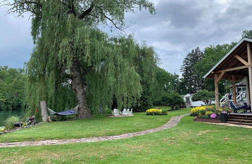 Seneca Lake, the largest and deepest of all the Finger Lakes, recognized as the Lake Trout Capital of the World is a casual boat ride via the canal. Off our NEW 40 foot, deep water dock with a NEW Power Tower, you can swim, fish or just relax nearby on the 5 Adirondack chairs that surround the fire pit, or relax (most likely sleep) on the hammock while seeing boats of every size and description go by. (Please note; the boat pictured with the accompanying photos is not part of the rental and will not be there when you rent the house so you can use the entire dock to swim, fish, relax on or dock your own boat.) From the occasional kayak, bass boat or yacht, the water is always calm and inviting. With a free public launch ramp only 3 blocks away on Oak Island, if you are a boater it does not get any better than that.