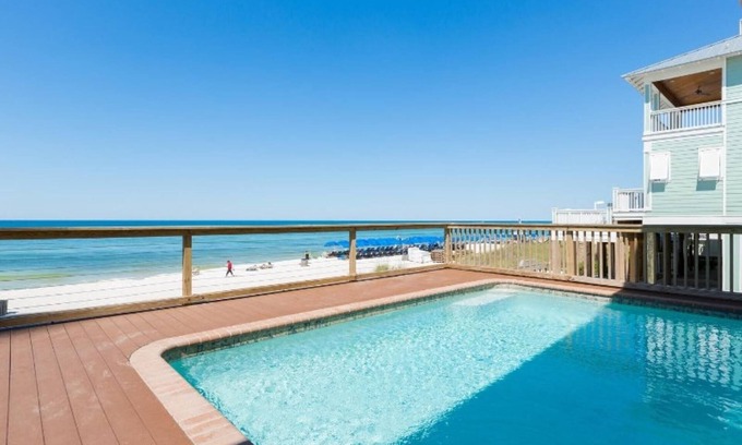 Beach Activities: Enjoy soaking up the sun and splashing in the waves right outside your door at Directly on the Beach, 6 bedroom Beach House with Heated Pool and Hot Tub. Whether you choose to swim, sunbathe, or build sandcastles, the pristine sands of Panama City Beach provide the perfect backdrop for a romantic wedding retreat.