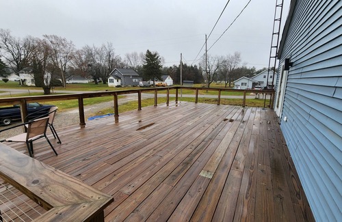 Nestled on 1 acre by Lake Erie, our retreat offers 145" movie nights, fires under the stars, and a wraparound deck. Pets can roam the fenced yard. Enjoy rainfall showers, smart toilets with bidets, heated bathroom floor in the master, plush bedding, and fast Wi-Fi. Cozy in winter, breezy in summer—perfect for work trips, visiting family, or unwinding year-round.