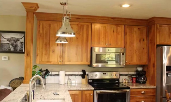 Your cozy getaway awaits in Amherst at this delightful farmhouse. With 2 bedrooms featuring a mix of king, queen, twin, and full beds, this serene retreat offers a peaceful escape. Enjoy the convenience of 3 bathrooms, a fully equipped kitchen, and an additional office space with a twin bed. Our place is equipped for both long or short stays to make your holiday one to remember.