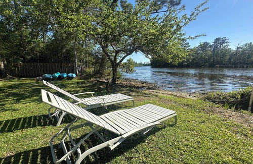 Your Biloxi adventure begins at this adorable 2-bedroom cabin off a private road on a 4 acre lot. With 2 full beds, 1 king bed, sofa/futon, and queen size air mattress this cozy retreat offers a comfortable stay for guests. Choose which body of water you’d like to cast a line, our cabin has a creek, lake, and pond! Go for a walk, drink coffee on the master balcony with private stairs, or go kayaking!! Sit by the fire pit or grill with family and friends under the house looking at the water or under the string lights by the pond! It’s the perfect spot! Enjoy the convenience of the shopping center nearby, white sand beaches, 5 miles from casinos, 15 minutes from the airport, and military bases! We can’t wait to host you and for you to experience the Gulf Coast at Cedar Lake Cabin!