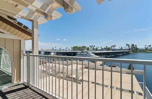 3 bedrooms and 2.5 bathrooms duet home. All the bedrooms are upstairs. The primary has a California King bed, French doors that look out onto the water, and a luxurious en-suite bathroom with a three-head custom shower and walk-in closet. The second bedroom has a queen bed. The third bedroom has a twin-over-queen bunk bed. The two bedrooms share a full bath with a walk-in shower (sorry, no tubs). All the bedrooms have Purple mattresses, linens, and pillows. Each bedroom is equipped with a large flat-screen Smart TV. Downstairs has its own half bathroom. There is an open-style living room, kitchen, and dining area that opens up to the large deck where another dining table and chat-style lounge seating with a fire pit table and a BBQ grill. Perfect for watching the sunset. The living area has games to play and an 80-inch smart TV. The entire home and deck have built-in speakers (please be courteous to our neighbors and friends who live on their boats).