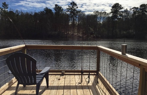 Nestled on 5 remote acres, a primitive one-room cabin overlooks a 3 acre pond, beach, & fishing dock. Enjoy fishing, sunbathing, camping, bird watching, and all the beauty of this natural, undisturbed setting.