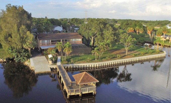 This beautiful 6 bedroom home includes 12 Queen beds, 4.5 bath, 10 car space, Pool, and a boat ramp that gives you access to the Gulf of Mexico! Your surrounded by a beautiful view and surrounded on two sides with water, their are dolphins that come up so if your lucky you will be meet our aquatic neighbors! The home has plenty to entertain you and your family with, There's a game room in the first floor, a outdoor pool, and a outdoor kitchen. There's also plenty of land to play on and space for parties or for celebrating a family get together. We know you will enjoy your stay here, its a hidden paradise near the heart of Tampa! Our dock was recently replaced so you can enjoy sunsets and fishing during your stay!