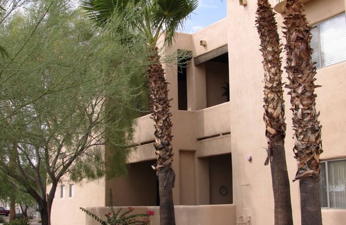 Our condo is a bright and airy 2nd floor unit with 20 ft ceilings recently redecorated and refurnished. It is a short walk to the famous fountain park, downtown shopping and restaurants. The living room has a 42' flat screen TV, expanded cable and wireless internet, while the adjoining dining room has seating for 6. The master suite has a king size bed with large walk in closet and the master bath has a separate vanity area. The guest room has a queen size bed with large closet. The separate laundry room has a full size washer and dryer. Enjoy the private balcony with patio set, grill and views of 4 peaks mountain range. Our condo has a heated pool and hot tub and also has a 1 car garage! Within a short drive are Saguaro Lake, McDowell Mountain Regional Park, spring training, casinos and many award winning golf courses. Fountain Hills boasts numerous fine restaurants and shopping areas.