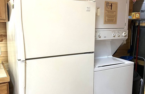 The cabin has two spacious rooms with 2 bathrooms (one has tub/shower combo--other has a shower stall) and is completely furnished: stove, fridge with top freezer, washer/dryer. There is a split-system heat/AC, and an additional window AC, and ceiling fans in each room. Kitchen area has coffeemaker, microwave, toaster oven, toaster, crock pot, rice cooker, dishes, pots 'n pans, silverware, dishtowels, etc.