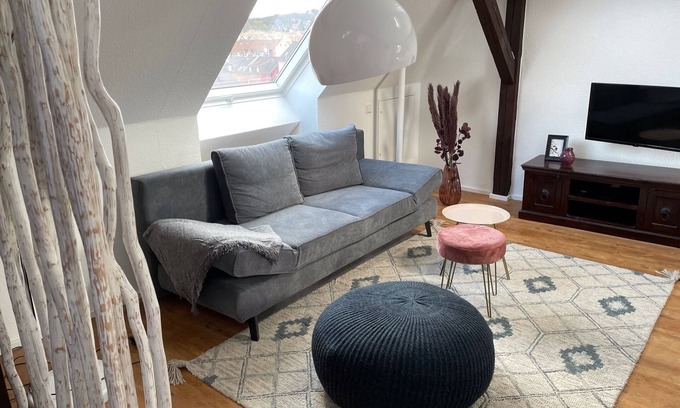 Feel warmly welcome in this beautiful 65sqm large and newly renovated apartment on the edge of the city center of Eisenach, with a view of the Thuringian Forest. We hope that you don't lack anything, which is why we have furnished everything with a lot of love. Our kitchen is fully equipped, you will always find supplies such as coffee beans, salt, pepper, olive oil, sugar, soap, dishwasher tabs, bed linen and towels (also for the dishes).