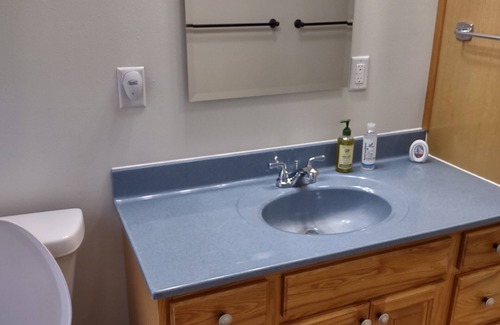 Unwind in the cozy living space, where a smart TV awaits for your entertainment. When it's time to refresh, the home provides essential amenities such as a bathroom, towels, and basic soaps, as well as air conditioning, heating, and fresh linens to ensure your comfort.