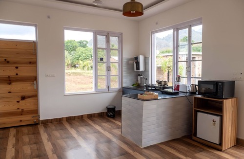 Escape to Tulip Villa, a secluded retreat nestled between mountains on three sides with a stunning valley view. This spacious haven combines tranquility with modern luxury, where diverse birds visit daily and crickets serenade you under star-filled skies. Experience the magical, breezy climate year-round while enjoying expansive lawns on three sides. Wake to butterflies dancing in the sun, unwind in thoughtfully designed spaces with contemporary amenities, and reconnect with nature’s rhythm. Tulip Villa offers an exclusive sanctuary where mountain serenity meets modern comfort.