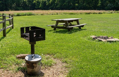 The fully stocked kitchenette allows you to prepare delicious meals, and the outdoor fire pit and furniture provide the perfect setting for al fresco dining and stargazing. With air conditioning and heating, you'll be comfortable no matter the season.