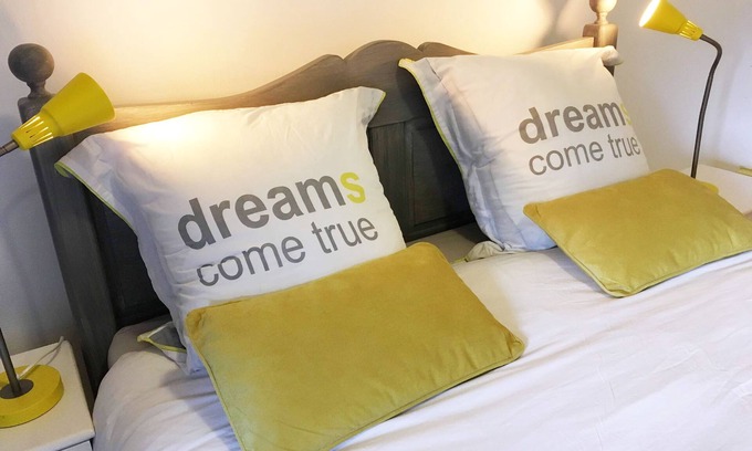 Our room "Camomille et Aneth" gives you the best view to wake up with in the morning, because you get a view of our 400 year old oak tree in the garden. Equipped with a double bed, this room is connected to another room with 2 single beds, making it suitable for four people. It has its own bathroom with shower and toilet. From the window you can feel the power of the oak and you are ready for your day!