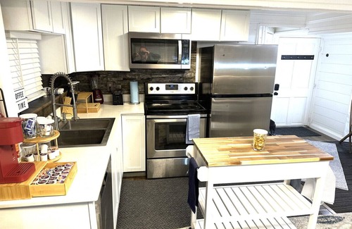 Welcome to "Hot Tub Hideout," an exquisitely renovated apartment featuring a sleek, discreet entrance artfully concealed between the detached garage and the rear of the residence, nestled within a private backyard oasis. This distinctive attribute, from which the property derives its evocative name, guarantees an unparalleled sense of seclusion. Inside, the apartment showcases a large one-person hot tub jacuzzi equipped with 10 powerful jets and enhanced bubble features. The retreat also boasts a spacious king-size bed adorned with premium linens, delivering an unmatched level of comfort and sophistication. Additionally, a plush sofa provides an inviting haven to fully recline and immerse yourself in a cinematic experience on the 75-inch 4K smart TV, creating the perfect setting for a relaxing escape.