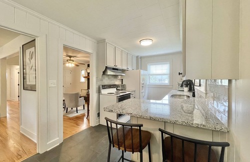 Escape to the charming "Carolina Cottage" - a cozy 2-bedroom retreat in Hickory, NC. Recently renovated, this transitional-style home offers a fully equipped kitchen, covered porch, and convenient access to downtown, parks, Lake Hickory, Hickory Airpot, Crawdads Stadium, and Appalachian States new Campus . Ideal for up to 4 guests, indulge in the comforts of this peaceful haven while exploring the vibrant city and nearby attractions. Experience the perfect blend of relaxation and adventure at "Carolina Cottage."