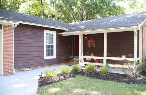 Just a 15-minute drive from downtown Greenville, our vacation oasis offers the best of both worlds. Immerse yourself in the city's culture, shopping, and entertainment, then return to your own slice of tranquility. Set against the backdrop of its own enchanting forest, our property features a porch that encourages moments of quiet reflection and rejuvenation.