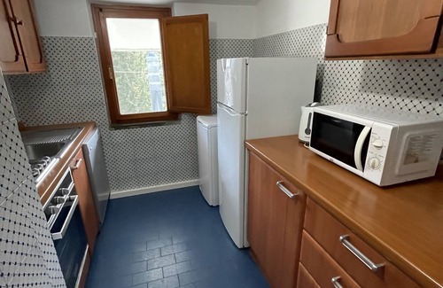The apartment is on the third floor of an apartment building, comprising entrance hall, large living room with dining area and fireplace, sofa and two armchairs, kitchen equipped with fridge, dishwasher, washing machine, a double bedroom, a bedroom with a single bed and a bed bunk beds, a bathroom with toilet, bidet, sink, bathtub. Free on-site parking.