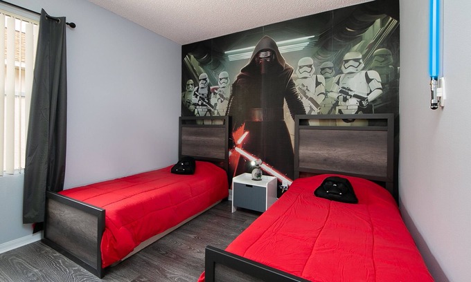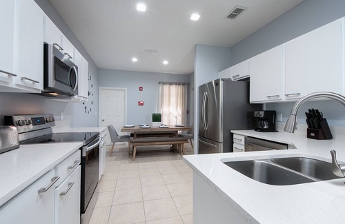 Georgously and newly remodeled spacious home with screened in pool. 2 Master Suites with private bathroom, 3 double bedrooms and playroom themed with different Disney movies. Playroom has PS4. Centrally located just 15 minutes from all Disney parks, 25 minutes from both Universal Studio's theme parks and Legoland. Also have Outlets, restaurants, Golf country club and movie theater just 5 mins away. Charcol barbeque available at not additional charge, heated and hot tub optional for a $45 a nigth