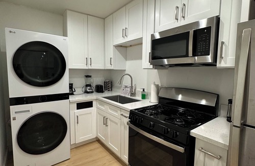 This 2-bedroom house is perfect for your escape to Fullerton. The pleasant living room with a futon offers a peaceful space to unwind after a day of exploring. Guests can enjoy a tremendous night's sleep on the two queen beds. The bathroom is equipped with a hairdryer and shower for added convenience. With amenities like AC and heating, your stay will be comfortable no matter the season. Enjoy all that Fullerton has to offer when you stay at our place.