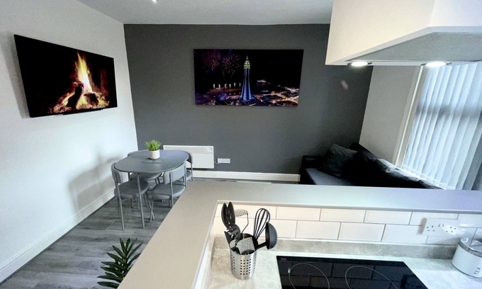 Best-rates for the Blackpool Town Center apartment starts from $149 per night with includes Internet, TV, Security/Safety, Bedding/Linens, Wellness Facilities, Fireplace/Heating, Hot Tub, Kitchen, Laundry, Parking, Guest Services, Child Friendly with all other amenities. Perfect for Weddings is committed to ensuring every guest experiences a comfortable and extraordinary stay, whether planning a romantic getaway, a honeymoon, a pet-friendly stay, or celebrating with the entire wedding party.