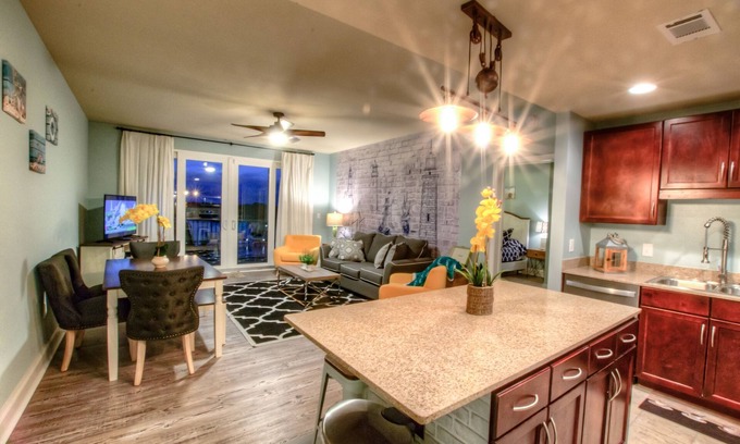 Completely Remodeled and Beautifully Furnished Condo, located within a short walk to the beach. Lake town Wharf offers THE Resort style vacation, from the five unique pools, 52,000 square feet of lakefront boardwalk, a fully equipped fitness center, covered parking, miniature golf, an on-site market/bistro, on-site dining options and flexible meeting spaces for conferences, to weddings and other group functions. There is really no reason to leave, other than the beach experience you can find across the street.