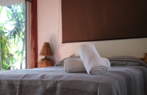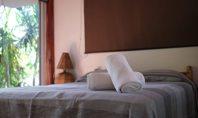 "Welcome to our Tranquil Wellness Oasis, a meticulously designed and well-ventilated retreat nestled steps away from the pristine beaches of Puerto Escondido. Your room is equipped with modern comforts including air conditioning, a ceiling fan, and a plush double bed, ensuring restful slumbers.