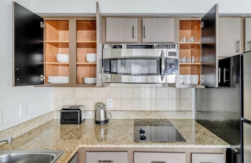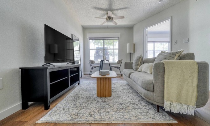 This furnished apartment is located in Arboretum, a fast-growing neighborhood north of downtown Austin. Centered around the massive outdoor shopping center of the same name, this area is known for fantastic shopping. The open-air Arboretum mall is an ideal place to shop for just about everything, since it is home to a Target, Trader Joe's, Costco, and more. There are also high-end fashion brands represented and a food court and cinema. The neighborhood is home to several hotels, and the family friendly Museum of Ice Cream is nearby.