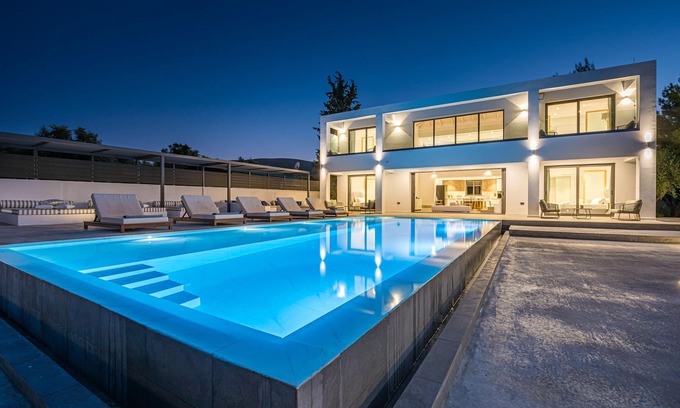 Best-rates for the Divine Villa Zakynthos starts from $816 per night with includes Fireplace/Heating, Guest Services, Entertainment, Breakfast, Child Friendly, Pool, Security/Safety, Wellness Facilities, Toiletries, Barbecue/Outdoor Cooking, Internet, Laundry, Parking, Pet Friendly, TV, Transportation/Shuttle, Air Conditioner, Balcony/Terrace, Accessibility, Bedding/Linens, Kitchen with all other amenities. Perfect for Weddings is committed to ensuring every guest experiences a comfortable and extraordinary stay, whether planning a romantic getaway, a honeymoon, a pet-friendly stay, or celebrating with the entire wedding party.