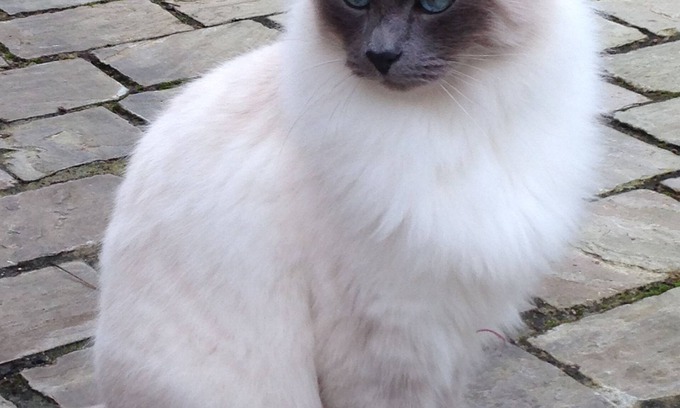 Django is our cat with blue eyes, sacred Burma, white with a face and a dark brown tail. Very kind!!