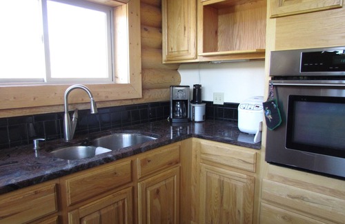 The Sawtooth Escape home has slate floors, big screen LED TV, surround sound, Direct TV and of course WIFI. Front deck has unobstructed views of the Sawtooth Mountain Range with patio furniture. The kitchen boasts stainless steel appliances and granite counter tops; a fully stocked kitchen (including spices) are available. All bedding and linens are, of course, supplied by owner. Traveling in?? You can choose to have all or some meals and drinks provided for you. Feel free to give us a call to discuss the details. We are snowmobile friendly and will accommodate snowmobiles for the fun winter months.
