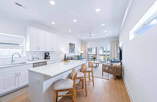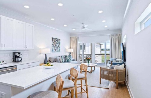 DETAILS: Winyah Bay Club features 17 stylish, individual cottage units, each ideal for large wedding parties, golf enthusiasts, and families. This cottage offers two spacious bedrooms, two and a half baths, and a master suite with breathtaking water views. The open-plan living room, kitchen, and dining area on the second floor are designed to maximize the stunning waterfront vistas, making every stay memorable and luxurious.