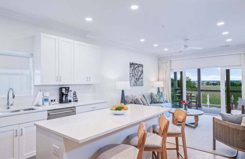 DETAILS: Winyah Bay Club features 17 stylish, individual cottage units, each ideal for large wedding parties, golf enthusiasts, and families. This cottage offers two spacious bedrooms, two and a half baths, and a master suite with breathtaking waterfront views. The open-plan living room, kitchen, and dining area on the second floor are designed to maximize the stunning waterfront vistas, making every stay memorable and luxurious.