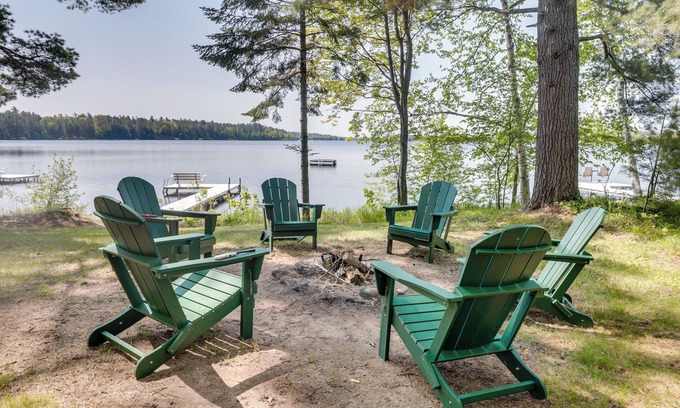 Dock + Fire Pit: ‘Sweet Serenity’ on Amber Lake | House in Lac Du Flambeau