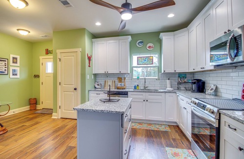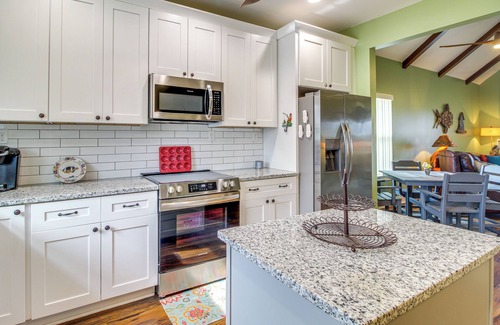 Nestled in the charming city of Midway and mere steps from the scenic riverfront, this 3-bedroom, 2-bath vacation rental home is ideal for those seeking relaxation and water-based adventures. Take the provided kayaks out for a spin, play cornhole in the sprawling yard, or roast s’mores around the fire. For more excitement, head to Savannah to explore the historic district or Forsyth Park!