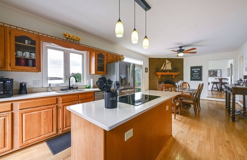 Access the joys of lake living when you stay at this 4-bedroom, 2.5-bathroom Roanoke Rapids house. Situated right on Roanoke Rapids Lake connected to Lake Gaston, this nautical vacation rental offers the comforts of home, as well as deluxe amenities like a game room and dock. Share meals by the fireplace, grill out on the patio, and take the kayaks to the water. Make sure to explore the nearby attractions!