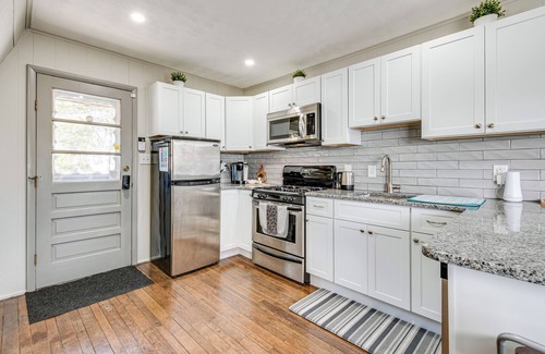 Retreat to this sweet vacation rental in Pocono Summit where you can fish off the dock, gaze at tranquil water views from the deck or sunroom, and walk to the beach! Several exciting family attractions are also a short drive away. Go down Kalahari Indoor Waterpark’s waterslides, hit the slopes at Camelback Ski Resort, or visit a casino. There’s something for everyone! Return to the 2-bedroom, 2-bathroom home and end your day roasting marshmallows by the fire pit or lounging by the fireplace.