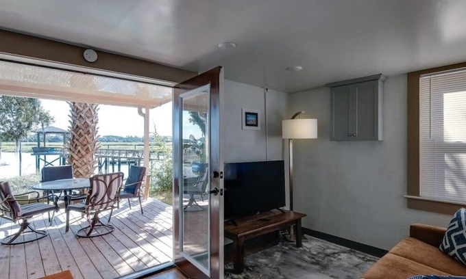 Our one bedroom, one bath studio ground floor apartment with dock and river access at the Retro Rainbow Herb River Hideaway might be small but it's big on southern charm! Our home accommodates up to 4 guests with a king size bed as well as a queen size pull out sofa. We are located just 8.5 miles from downtown Savannah and a scenic 30 minute drive will take you to beautiful Tybee Island. Free wifi, pet friendly with fee. We hope to host you!