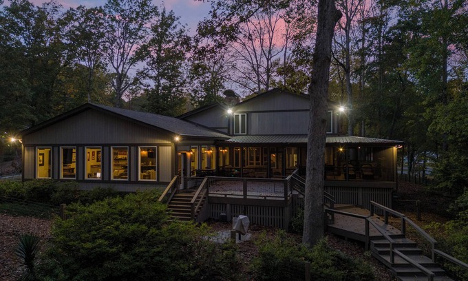 Enjoy the views from this unique and stylish Lake Hartwell home. Close to I-85 and Tugaloo State Park in Lavonia, GA. This luxury home features a Bulldawg room and bar, custom kitchen, spacious screened-in porch, fire pit area, boat dock with covered boat slip, 2 paddle boards, floats and lots of chairs. Beautiful sunrises on Lake Hartwell. Plenty of space to park your vehicles and boat trailer. Bring your family, your boat and enjoy your time on the Lake.