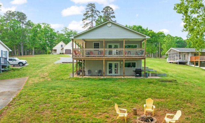 The upstairs unit of this lakefront duplex offers stunning main lake views, a private dock, fire pit and sandy beach, all just minutes from downtown Clarksville. Whether you’re fishing Buggs Island/Kerr Lake, vacationing with family, relaxing on the deck, or checking out the local wineries and brewery, Dockside Dreamz #2 is the perfect escape with all the comforts of home. Sleeps six with new luxury bedding, wifi and a large deck. Discounts available for those also renting Dockside Dreamz #1.