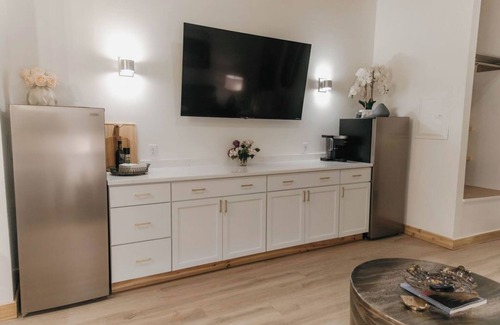 Welcome to "Dockside Suite 1" by The Brix, Canal Park's leader in elevated Duluth stays. This stunning, newly remodeled 1-bedroom, 1-bathroom condo in historic Canal Park boasts a Zen-inspired design, furnished and decorated to the nines. Featuring a plush king bed and a pull-out queen couch, it’s perfect for couples or small groups. The savvy, compact kitchenette is a game-changer—brilliantly designed to maximize entertainment space with sleek cabinetry concealing portable tabletop burners, a full set of cookware, a microwave/oven/airfryer combo, and a toaster, creating a convertible kitchen that keeps the living area spacious and inviting. Enjoy breathtaking views of the marina and the iconic William A. Irvin ship, plus contemporary comforts, an indoor pool, soothing hot tub, on-site micro-brewery, and cocktail lounge, all steps from Duluth’s Aerial Lift Bridge and Bayfront Festival Park.