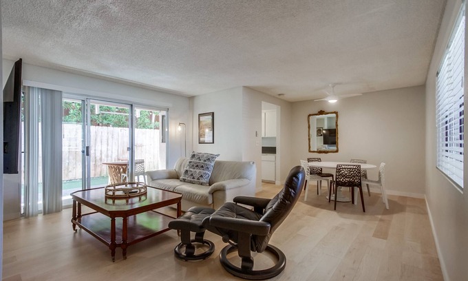 Enormous 1 bedroom, over a thousand sq ftBeach Condo, Blazing Fast Internet, Large Yard for well behaved Dogs. Safe and walkable to everything in Solana Beach, restaurants, cafes, bars, Cedros and Fletcher Cove Beach