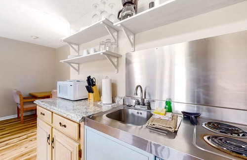 After a day of adventure, return home to an air-conditioned living space with every essential comfort. Fix a quick snack in the convenient kitchenette (with a mini-fridge, a microwave, a two-burner stovetop, and a coffee maker) and sit down with a cold drink outside on the patio. For your evening entertainment, enjoy complimentary WiFi and a Roku TV with streaming capability.